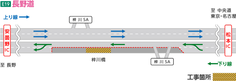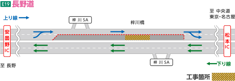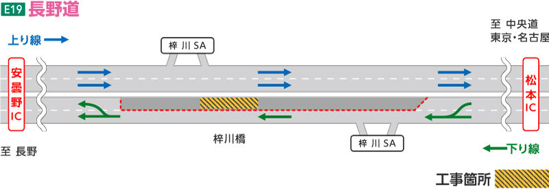 (上り線:中央道方面)塩尻IC→岡谷JCT 4月19日(日)21時~翌6時