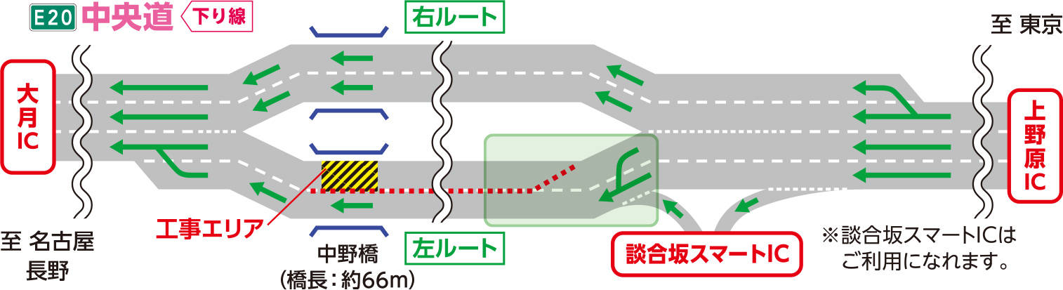 左ルートの閉鎖を一時的に解除し、昼夜連続・車線規制に規制形状を変更します。